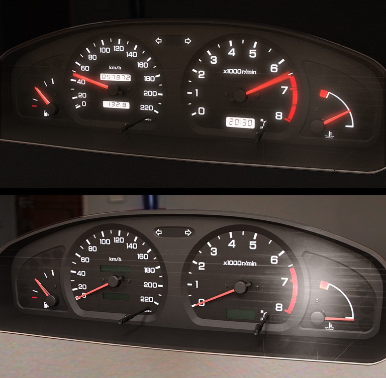 Tacho, 1. Nachtansicht, 2. Tagansicht